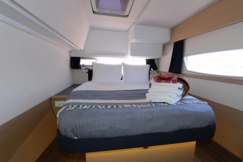 The common areas aboard Allende are inviting and uncluttered. The outdoor deck areas offer a mix of sunny and shady spots for relaxing, and guests love the panoramic views from the fully cushioned rooftop lounge. Meals are served al fresco at a teak dining table on the aft deck.The floor plan boasts three beautifully appointed, private staterooms for guests. Each cabin features a queen-size bed and an en-suite bathroom with electric flush head, separate shower, sink and vanity cabinet with mirror. The Helia Evolution showcases redesigned portholes in the cabins which increase natural light while maintaining privacy.